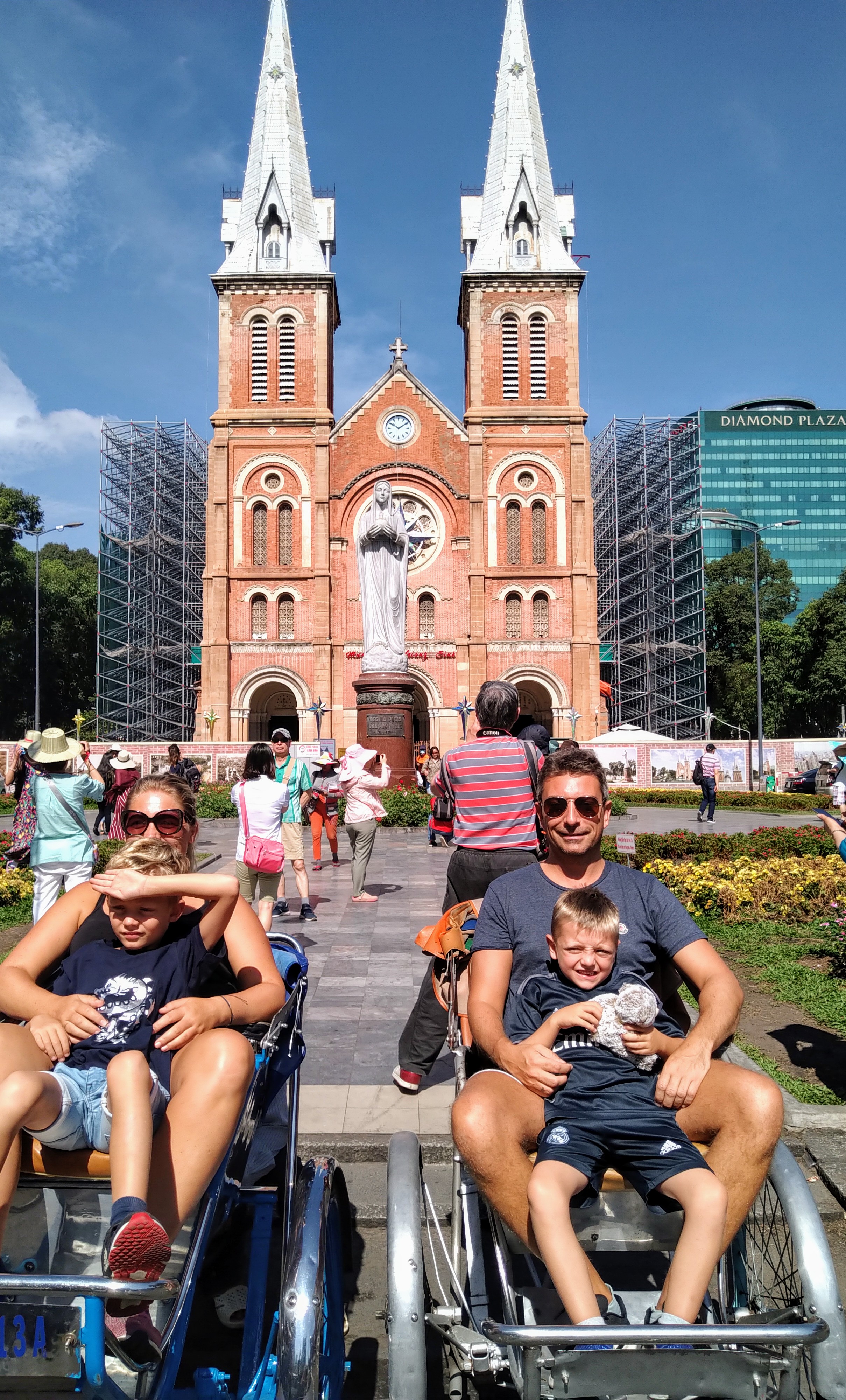 Vi satte os glade op og begyndte vores eventyr. Vi kørte afsted for at se de største turistattraktioner, og bare for at få et indblik i Ho Chi min City. Vi besøgte katedralen Notre Dame, central posthuset, uafhængigheds paladset, den pink kirke, Saigon river, og et hindu tempel. I templet købte vi nogle røgelsespinde som vi tændte og satte ved deres alter. Drengene spurgte om vi ikke skulle bede for noget når vi gjorde det. Vi stod alle i stilhed og tændte vores røgelsespinde og bad. Da vi kom ud spurgte Sander hvad jeg bad for, jeg fortalte ham at jeg bad til at hele min familie ville forblive raske og at vi ikke ville blive udsat for mere alvorlig sygdom. Nå svarede han, jeg bad om at blive den bedste til Fortnite.