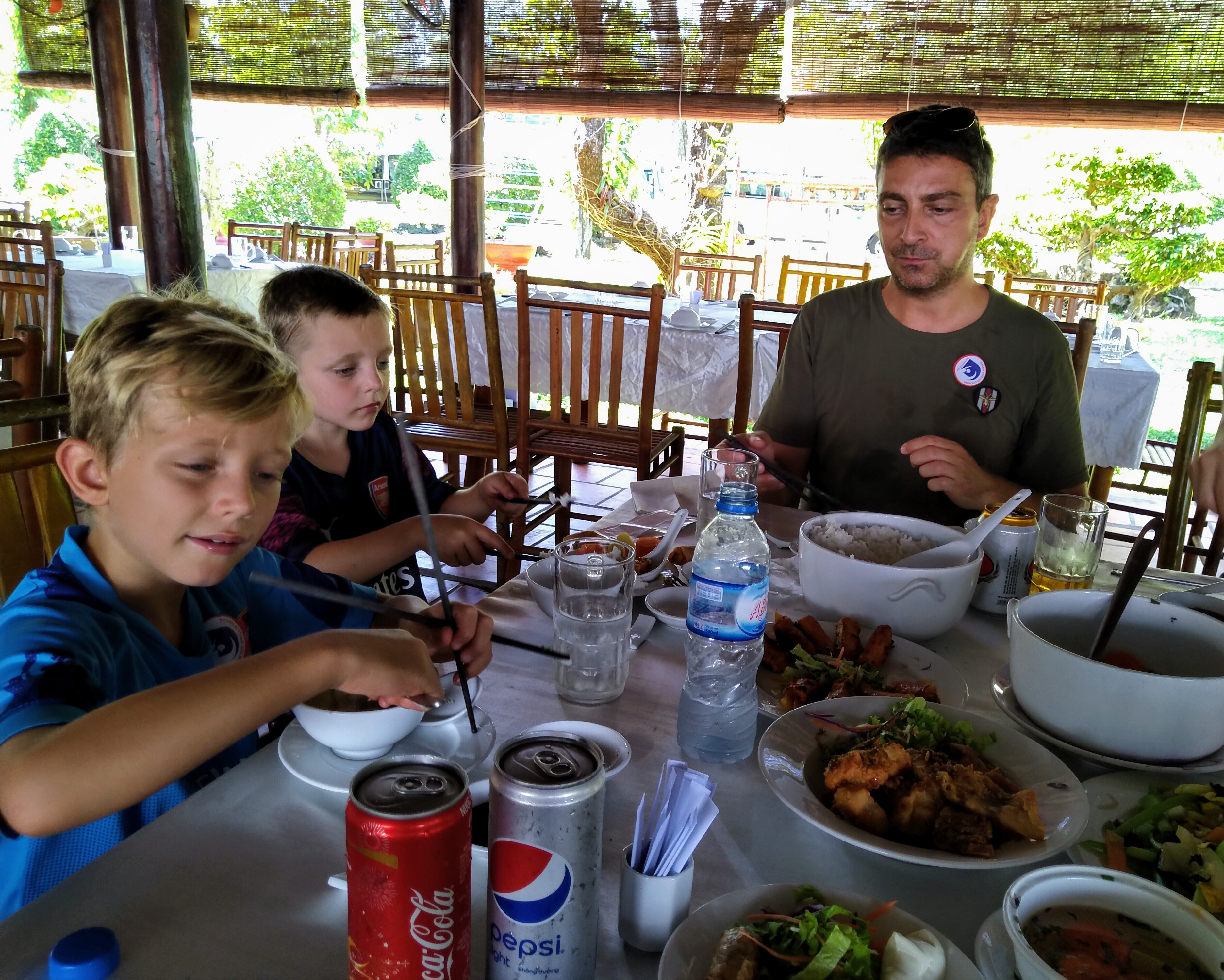 Inden turen gik tilbage til Ho Chi Minh City blev der serveret frokost nede ved floden. Det var en super lækker frokost med en masse små retter som vi bare kunne gå ombord i.