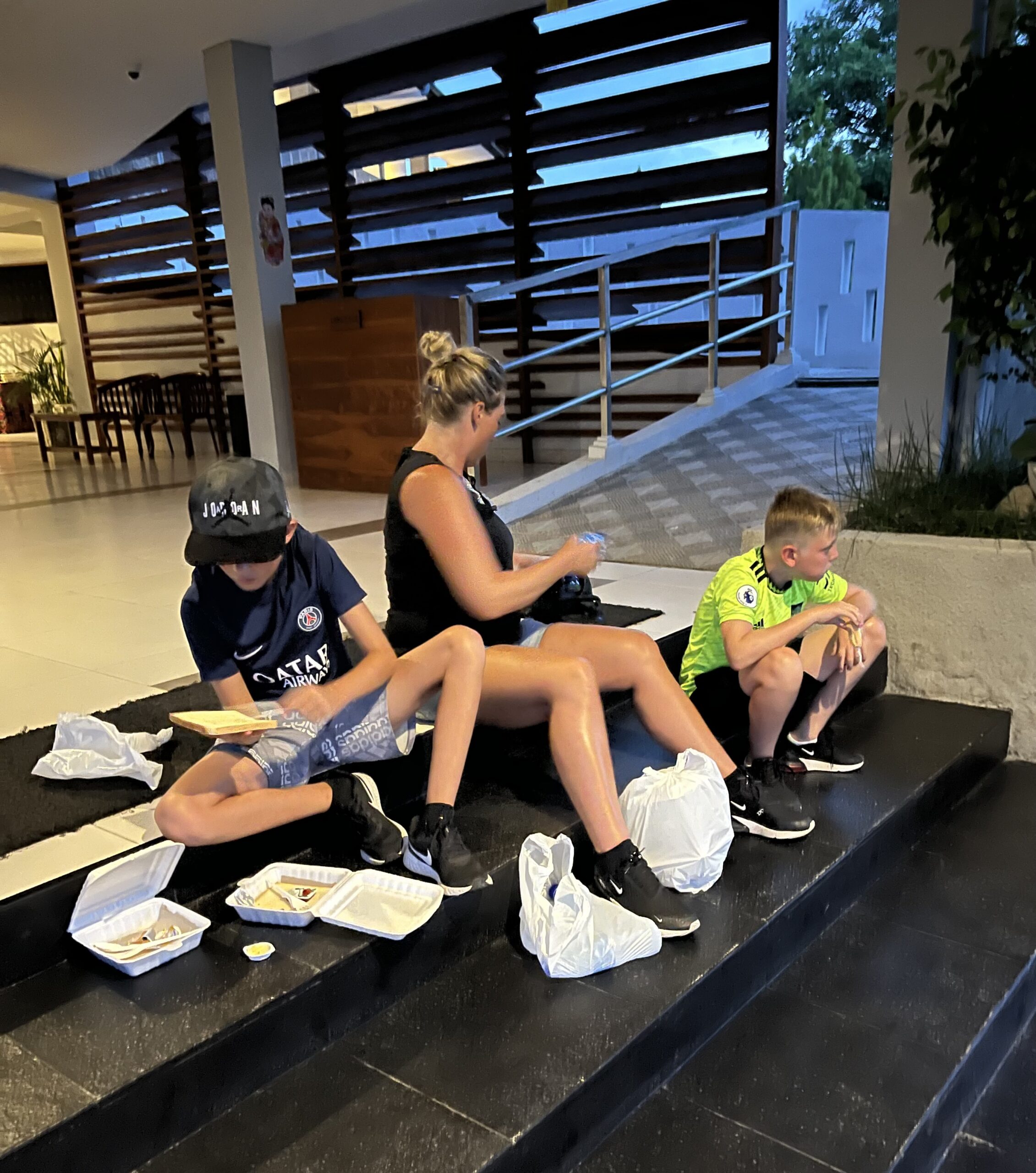 Vi fik igen en madpakke med morgenmad fra hotellet, som vi spiste mens vi ventede på vores lift til havnen.