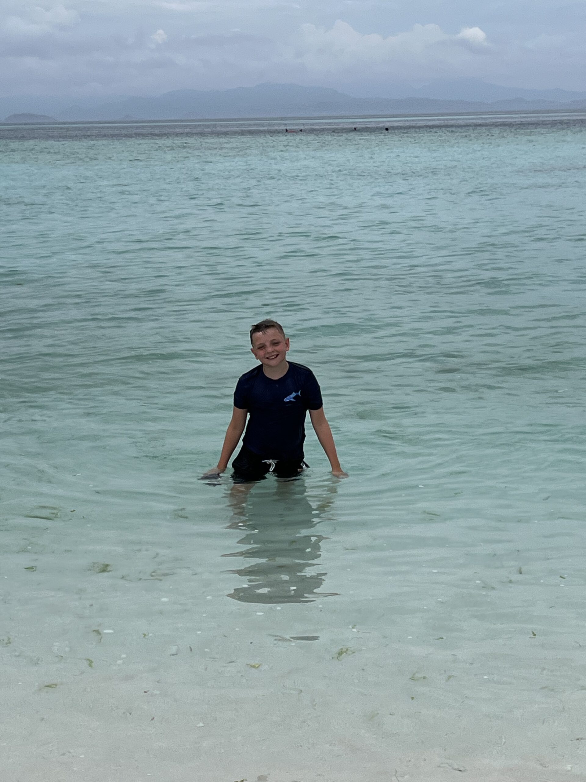 Sjette og sidste stop på turen var Kanawa Island. Det var endnu en smuk ø med en fantastisk strand hvor vi skulle snorke. Vi havde alle fået nok af snorkling, så Michael og jeg blev på båden og slappede af, mens drengene sprang i vandet fra båden og legede i vandet. De hyggede sig virkelig meget, og alle de unge mænd der arbejdede på bådene syntes at drengene var en fest, så de fik rigtig fyret op for dem allesammen.