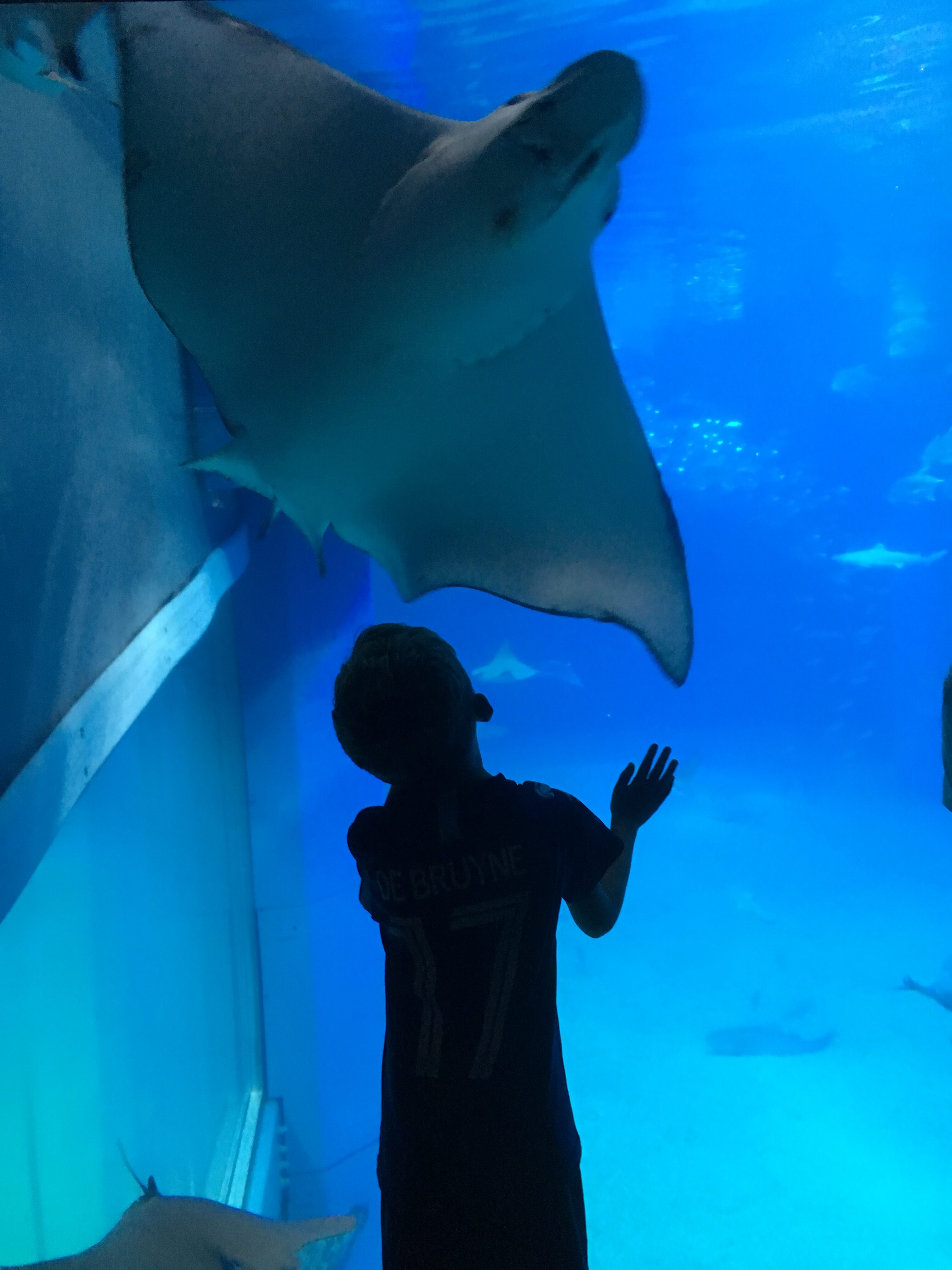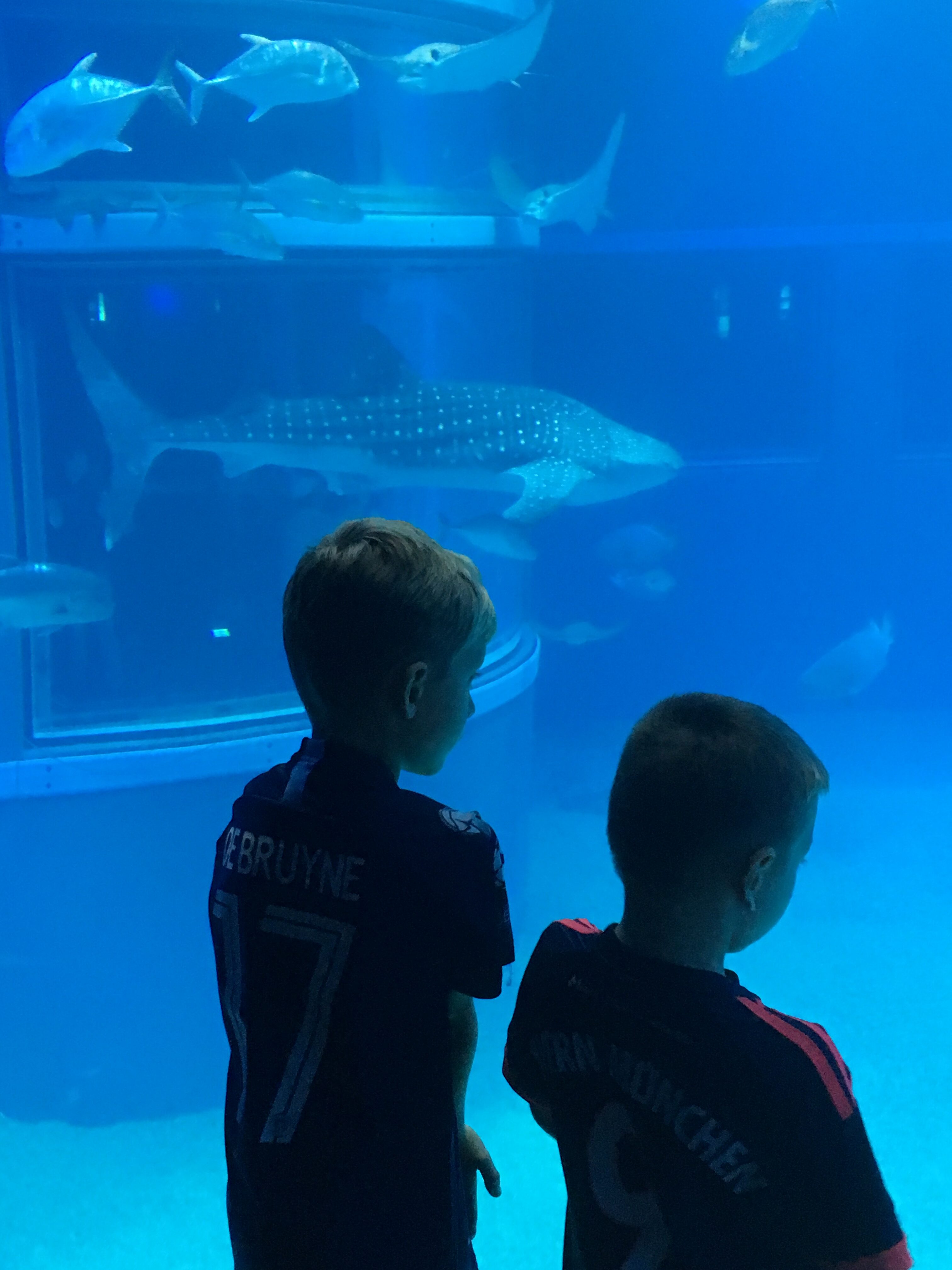 Drengene besluttede at vi skulle besøge Verdens største akvarium som ligger I Osaka. Det var en bustur på omkring 30 minutter fra vores hostel. Da vi kom derover var der Pokemon over det hele, så det skulle drengene lige bruge lidt tid på inden vi kunne gå ind. Akvariet var virkelig anbefalelsesværdigt, det var stort, flot og med tusindvis af forskellige fisk. I midten var der et virkelig stort akvarium som gik over 3 etager, det var fyldt med alverdens hajarter. Der var Leopardhajer, Hammerhajer, Blacktip og Hvalhajer. Drengene var fuldstændig paralyseret af det, og jeg må indrømme at jeg også var temmelig imponeret. Vi satte os simpelthen på gulvet foran glasset og bare kiggede på alle de smukke hajer i 30 minutter. Sander sagde han virkelig ville ønske han var en fisk så han kunne være i det akvarium, vi fortalte ham at han jo ikke behøvede at være en fisk for at få den oplevelse, for han kunne jo bare prøve at dykke. Det ville han lige overveje, for umiddelbart mente han ikke han turde dykke ved siden af hajer.