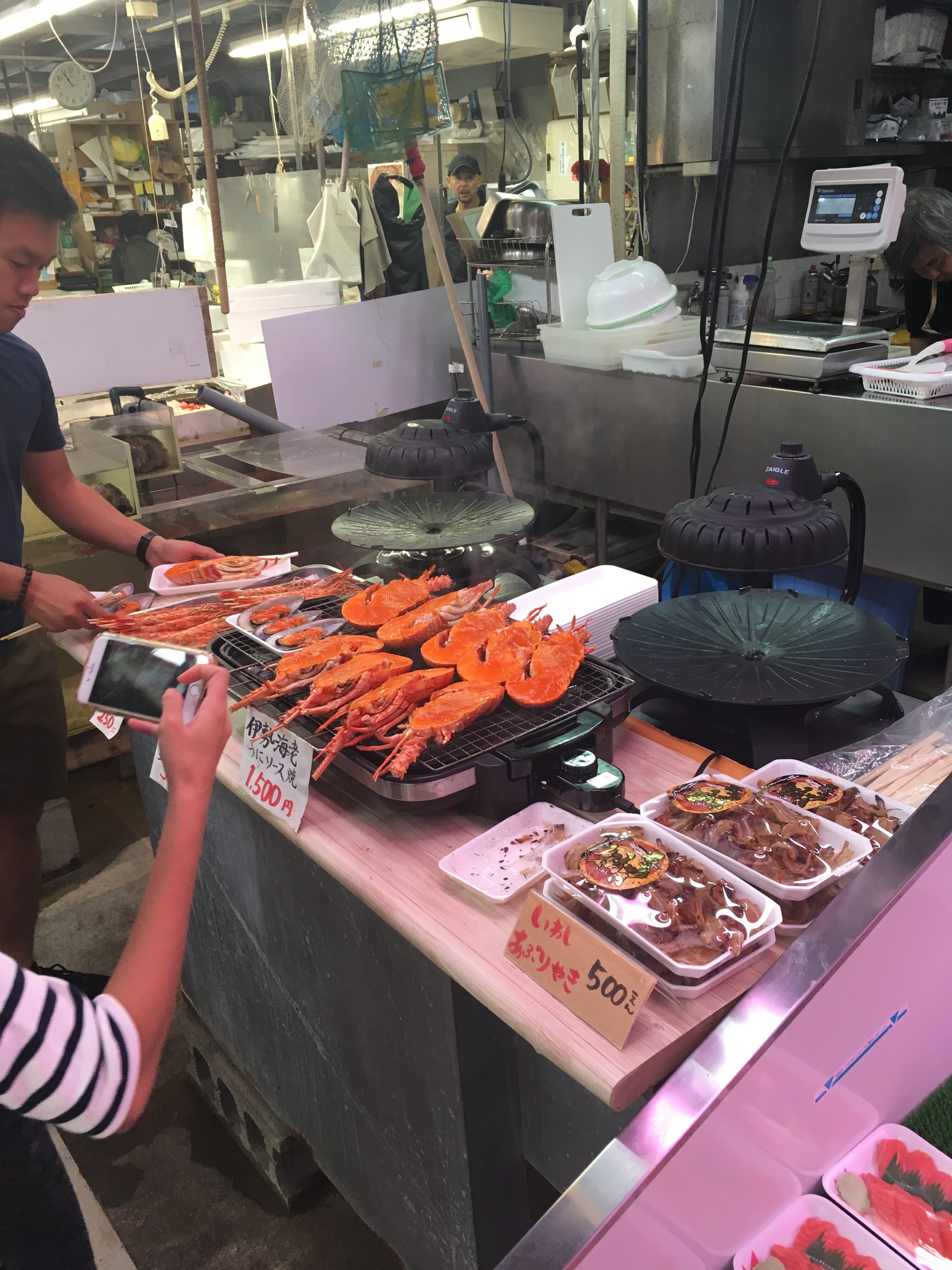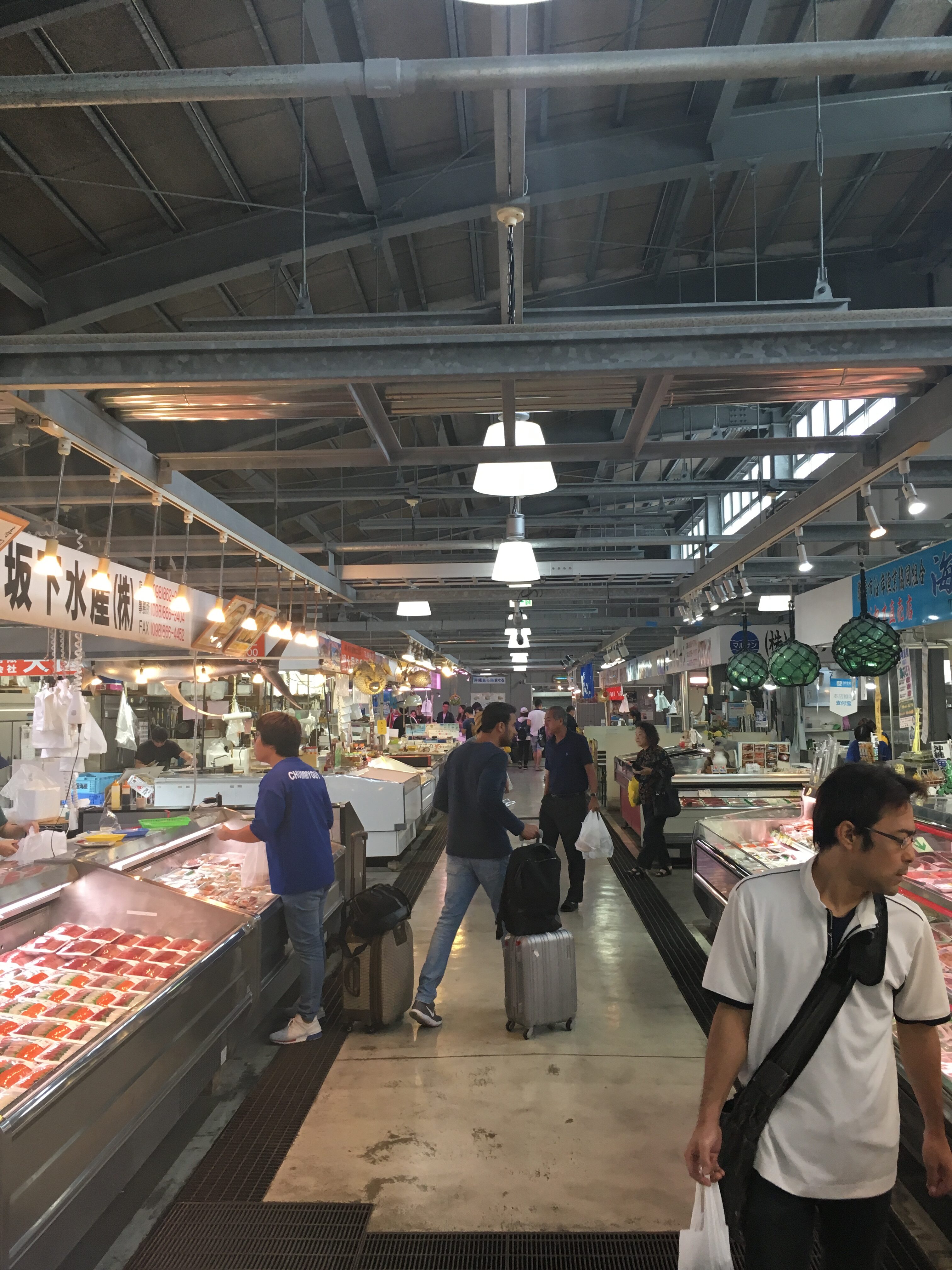 Da vi vågnede i morges var der ikke de store planer for dagen, så vi tog det stille og roligt. Der var også en masse skyer på himlen, så vi fik lavet lektier og jeg fik løbet mig en lille tur igen. Min tur gik forbi Okinawas fiskemarked, hvor der bliver handlet fisk i alle afskygninger. Hver morgen kommer fiskerne ind med deres fangst og sælger det her og så er der andre der laver dem klar til salg og så er der små boder hvor de sælger fisken. Japanerne er vilde med fisk det ved alle, men de køber det fra de små boder og så er der sat borde op hvor de kan spise dem med det samme, det er da frisk fisk 😜