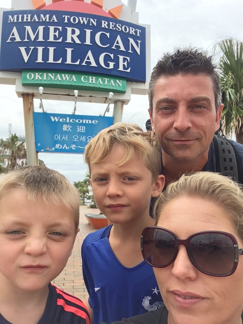Både på turen derud med bussen og hjem igen kørte vi forbi 3 amerikanske militærbaser og da vi gik rundt nede på stranden hvor drengene legede, kom der både helikoptere og jagerfly forbi, så drengene var helt vilde. De dansede rundt og så skulle der leges Fortnite… stranden er super flot, dog manglede solen lidt så den kunne leve op til sit fine navn Sunset Beach, meget amerikansk 🇺🇸