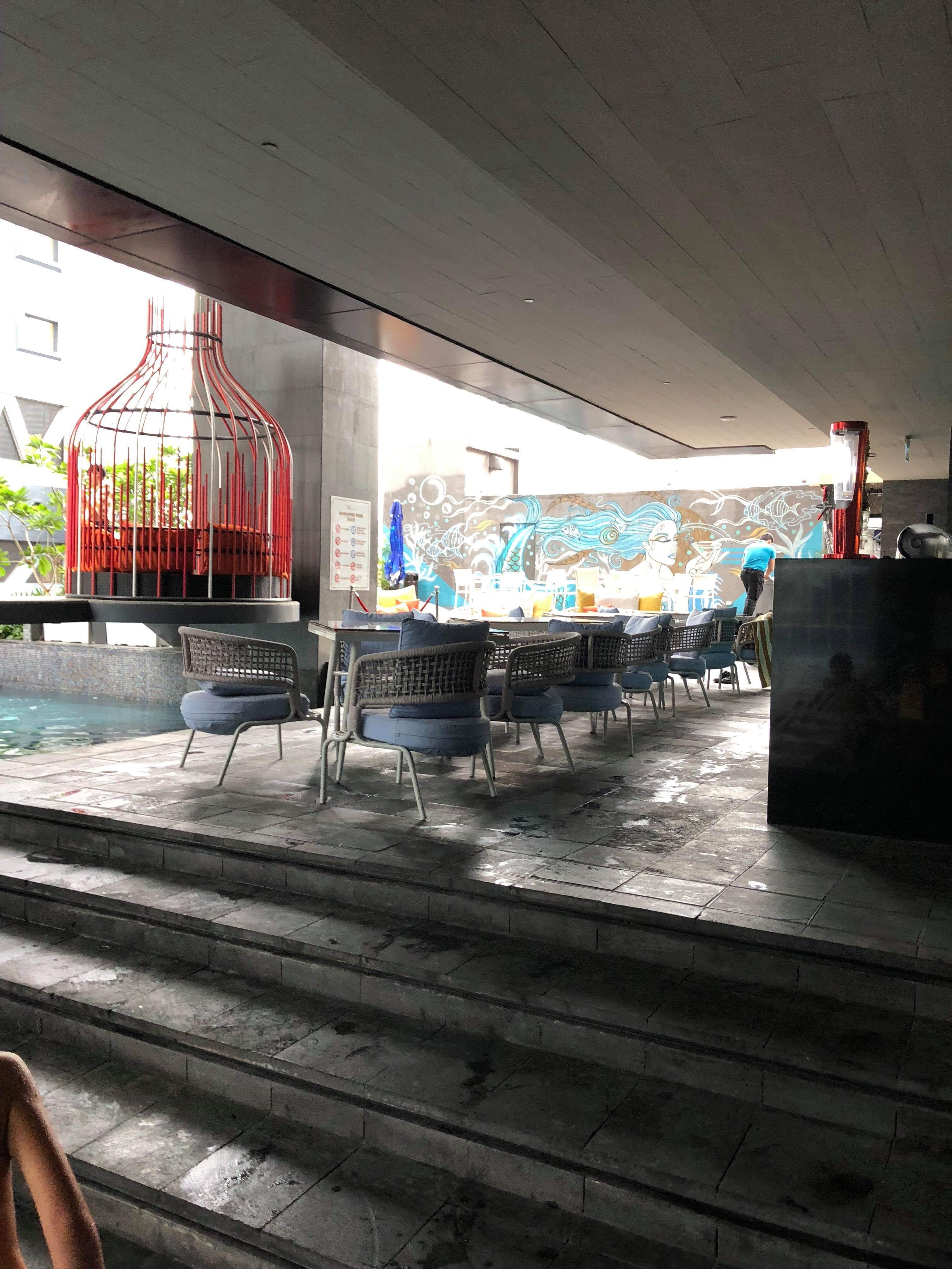 Efter morgenmaden lavede vi lektier på værelset, og derefter gik vi allesammen ned for at bade i poolen. Der er så flot ved poolområdet, det er sådan en infiniti pool med udsigt over Manilla. Der er flere niveauer i poolen, så man kan ligge på solsengen i poolen og sole sig. Da vi var færdige med at bade gik vi ind i spaområdet for at skifte tøj. Vi så der var sådan et Japansk onsen bad, som vi besluttede os for at prøve. I Japan måtte vi jo ikke pga. Tatoveringer. Når man skal bade i en onsen skal man være nøgen, og jeg må indrømme at jeg følte det en smule sært at gå nøgen rundt, for derefter at sætte mig i et bad med andre nøgne kvinder. Men så er det prøvet, og jeg kan i hvert fald bekræfte at jeg ikke skal være nudist 😎