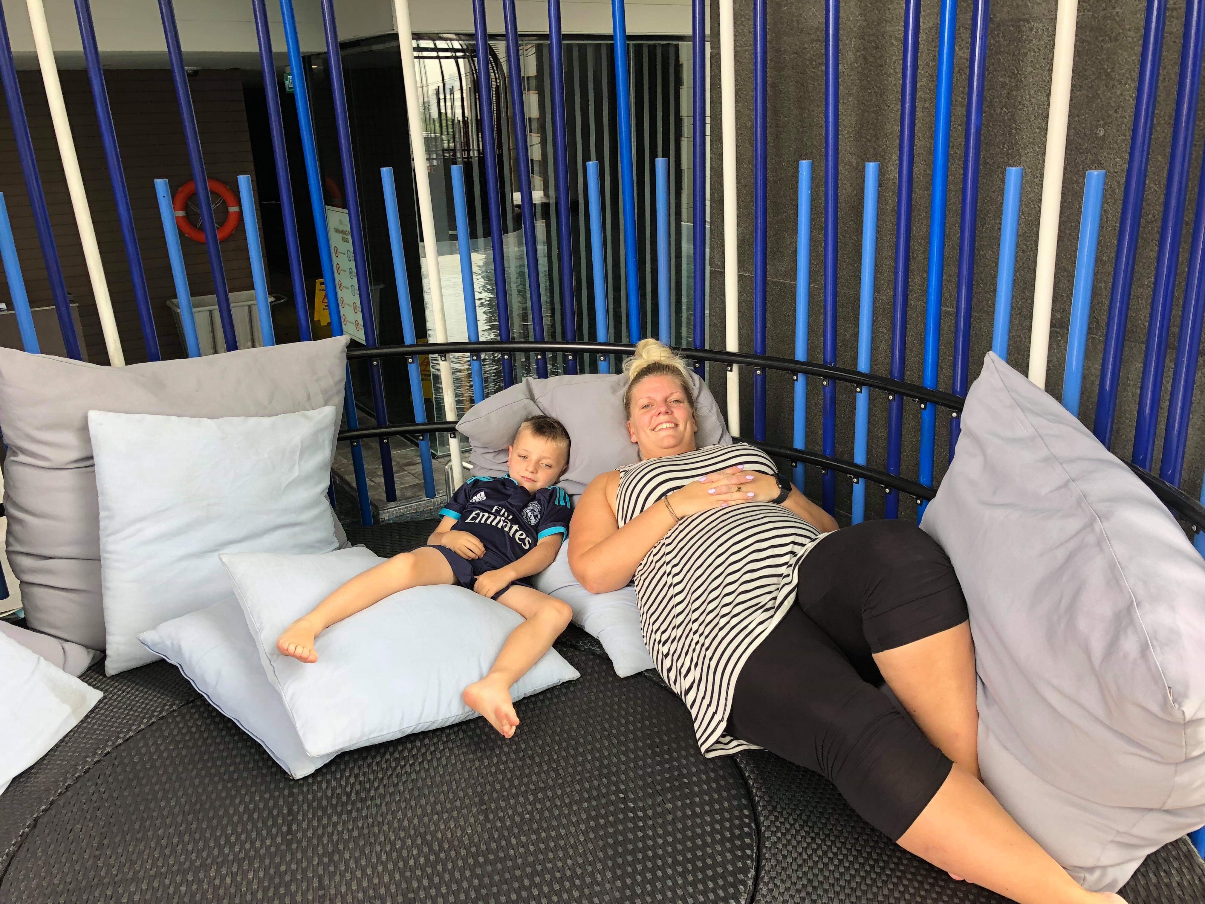 Vi blev vækket kl 7.00, vores kære nabo havde nemlig sat en alarm til kl. 7.00 og var så gået til morgenmad. Da alarmen havde ringet i 20 minutter ringede jeg til receptionen for at få dem til at låse sig ind og slukke for den. Fantastisk måde at blive vækket på 😝Vi spiste morgenmad på hotellet, buffeten er bare så lækker, så det er godt vi ikke skal bo her så længe for ellers var vi allesammen blevet virkelig tykke 😩