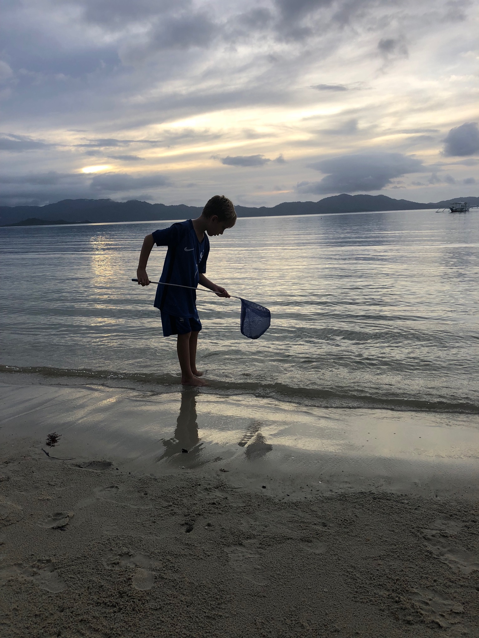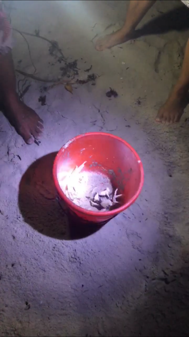 Vi var næsten hele hotellet der dragede afsted på krabbejagt, virkelig hyggeligt. Der er nogle huller i sandet, og nede i dem gemmer krabberne sig. Så gutterne lyste ned i hullerne med deres lygter, og var der krabber begyndte de ellers at grave til de sad med krabben i deres bare næver 😳💪🏻 til sidst satte vi alle krabberne ud igen. Drengene syntes at de krabber de fangede var lidt for store i forhold til de små de normalt ser om dagen så de var lidt bange i starten 😎