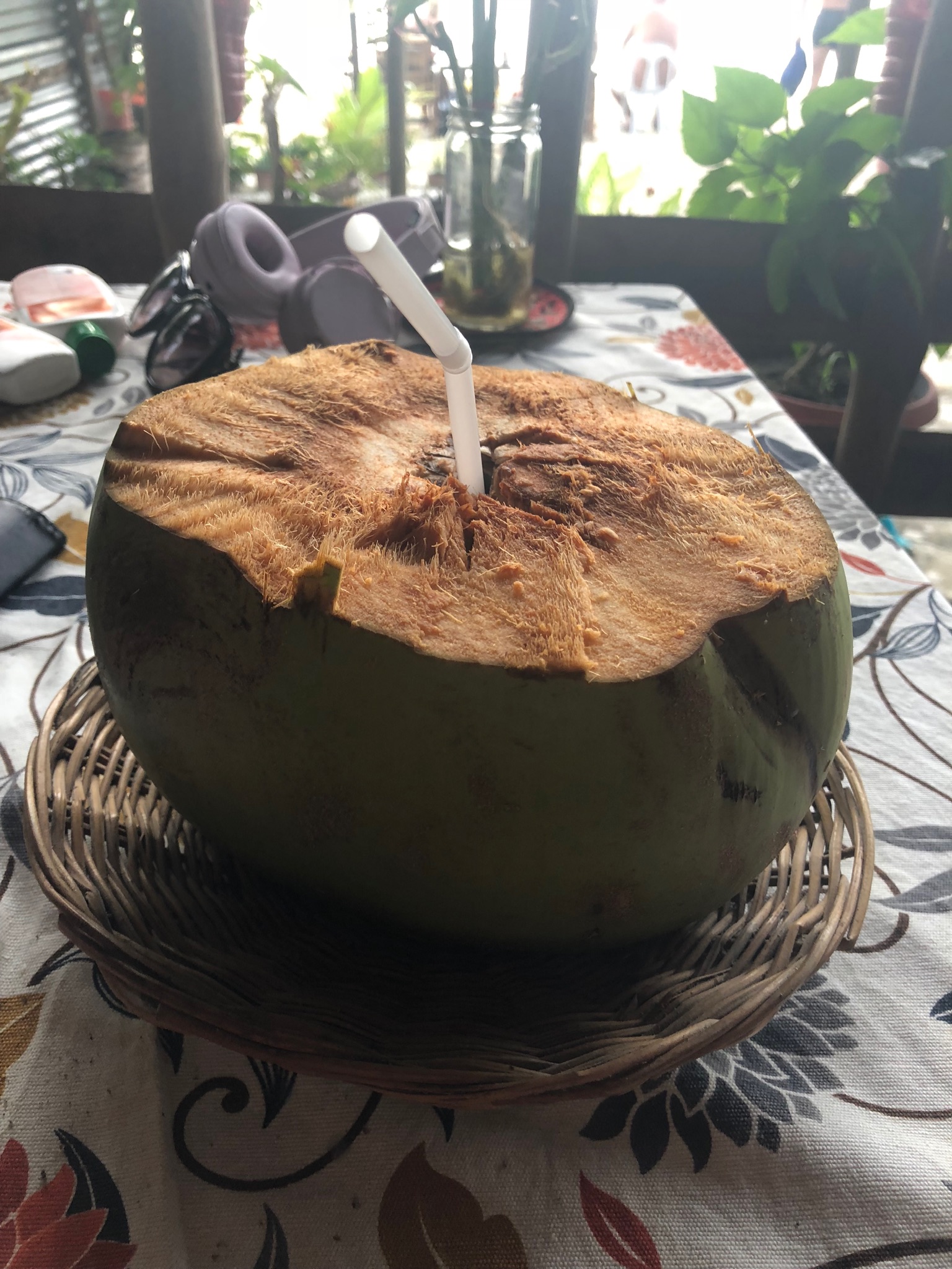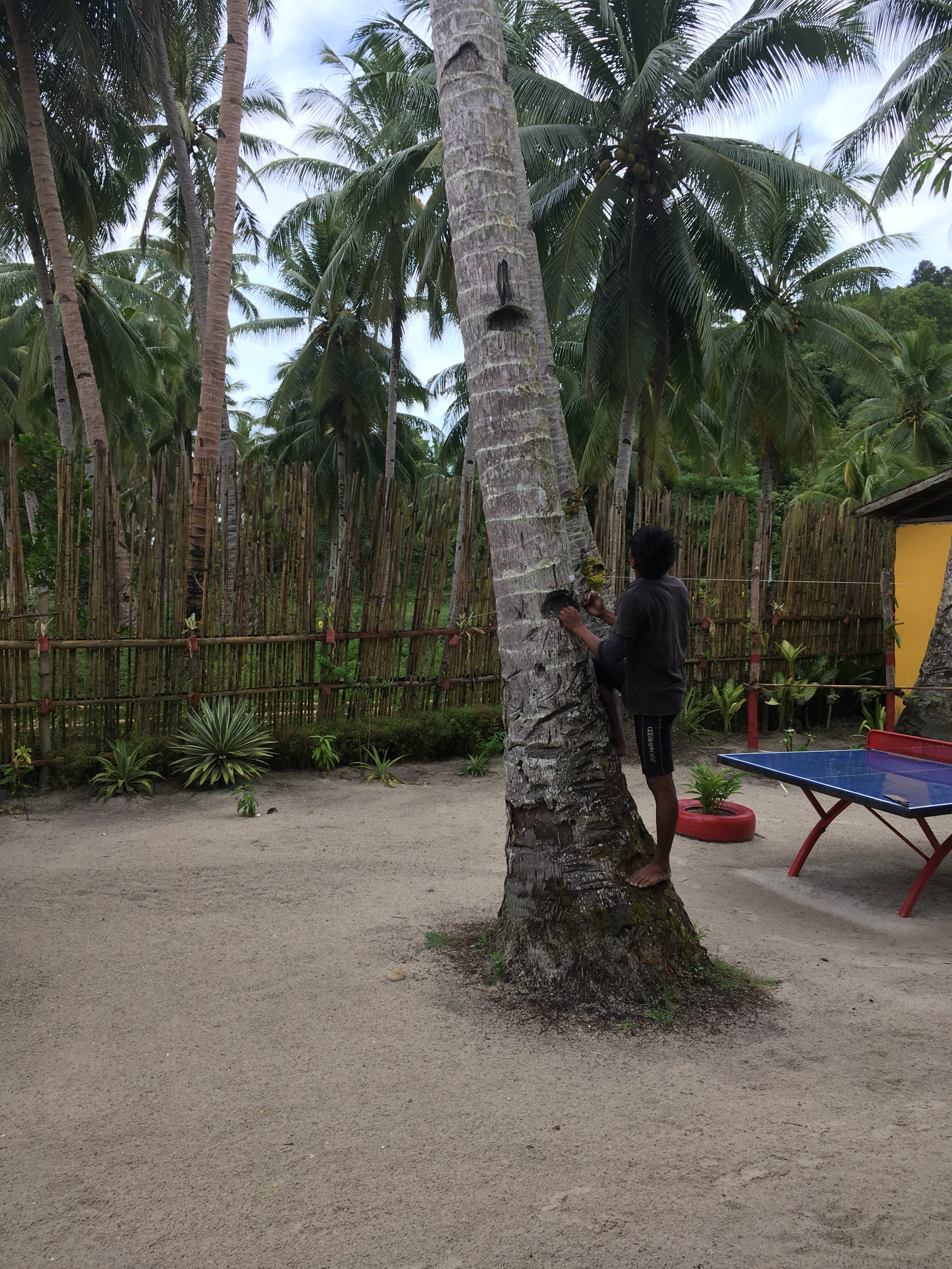 I eftermiddags var der en af gutterne herfra, der kravlede op i en af palmerne og hentede kokosnødder. Drenge har virkelig glædet sig til at kunne få lov at få en frisk kokosnød med et sugerør. Det var ikke meget de fik drukket, for det er jo sådan med sådan en nød, at det ser meget eksotisk ud, men smager virkelig ikke særlig godt 🤔